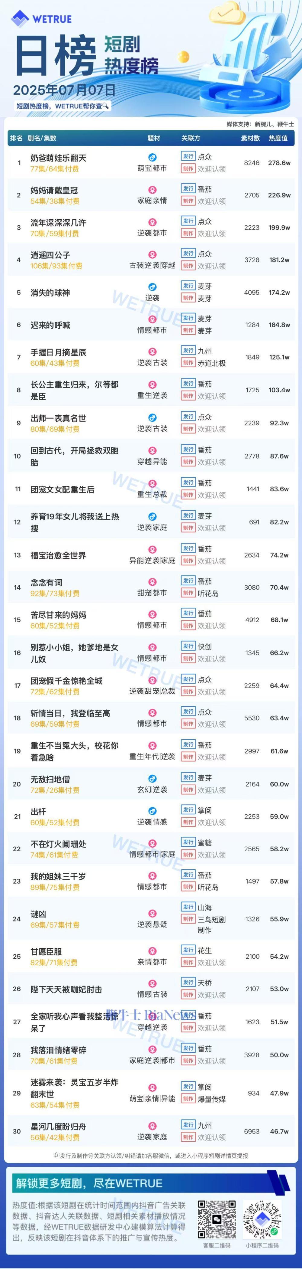 今天的新脉冲清单今天发布,昨天(7月7日)的阳光秀中的阳光秀清单,总受欢迎程度为50021万。相关说明:1。现在的列表由Wetrue Short Drama Data Company提供,而新的Bianer和Bianniu Shi提供了共同的支持。 2。名望的概念显示在上图的记录中,该记录不代表实际的消费补给量,仅代表参考。 3。目前,短戏市场分为三个部分:IAP市场流量,本地和自由IAA市场的付费投资。有关更多列表,请登录bianews.com或Wetrue mini计划。此列表仅提供有关付费投资流的普及的反馈。要了解简短的戏剧,请注意当时的脉搏。 7天的短剧受欢迎程度清单:“爸爸和可爱的婴儿”是第一个,市场的受欢迎程度为7月,7月的第一周,Baidu App短剧受欢迎程度为5021万列表:“胖妻子和女王不容易男人”是女演员的第六天短戏。男性演员热门指数排名:刘妮和他一致地名单上的第六天列表列表:“ Nian nian You Ci”是连续三天的第一个,市场的受欢迎程度为502.9万,在戏剧的前5天短列表中:“ Nian Nian nian You ci is of Pucariaty is of Pucison”是50 nian You Ci is of Pucison of Pucison of Pucison of Pucarion is is to Prucation ins of Funcompution 15.